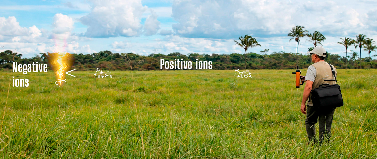 No utiliza bobina VLF. Trabaja con clasificación direccional iónica, captando variaciones del campo iónico/electrostático de objetivos antiguos.